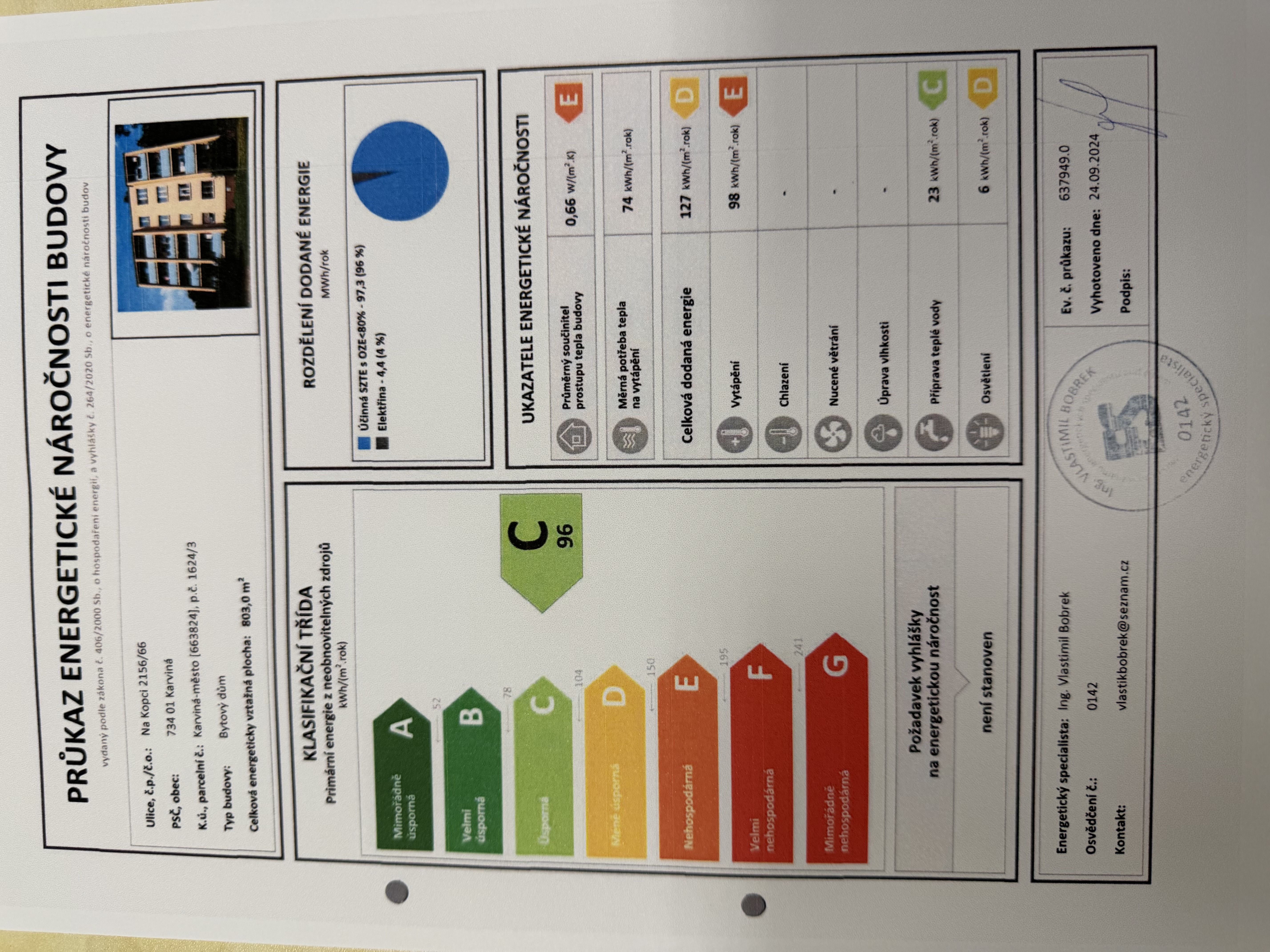 | Ukazatel ENB | 96 kWh/m2 za rok |